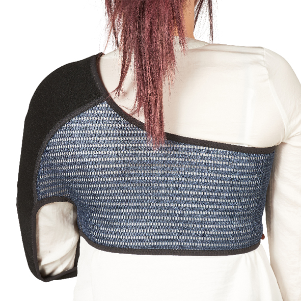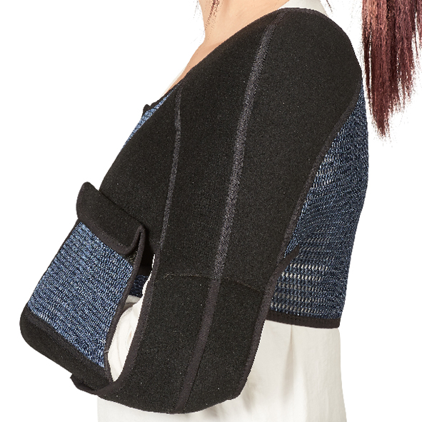 Vission shoulder immobilizer is intended to immobilize and contain the upper limb, elbow, forearm flexed at 90° or 130° as required. Especially suited for shoulder and pectoral girdle lesions. The product is reversible and can be used either on the left or on the right shoulder as required.