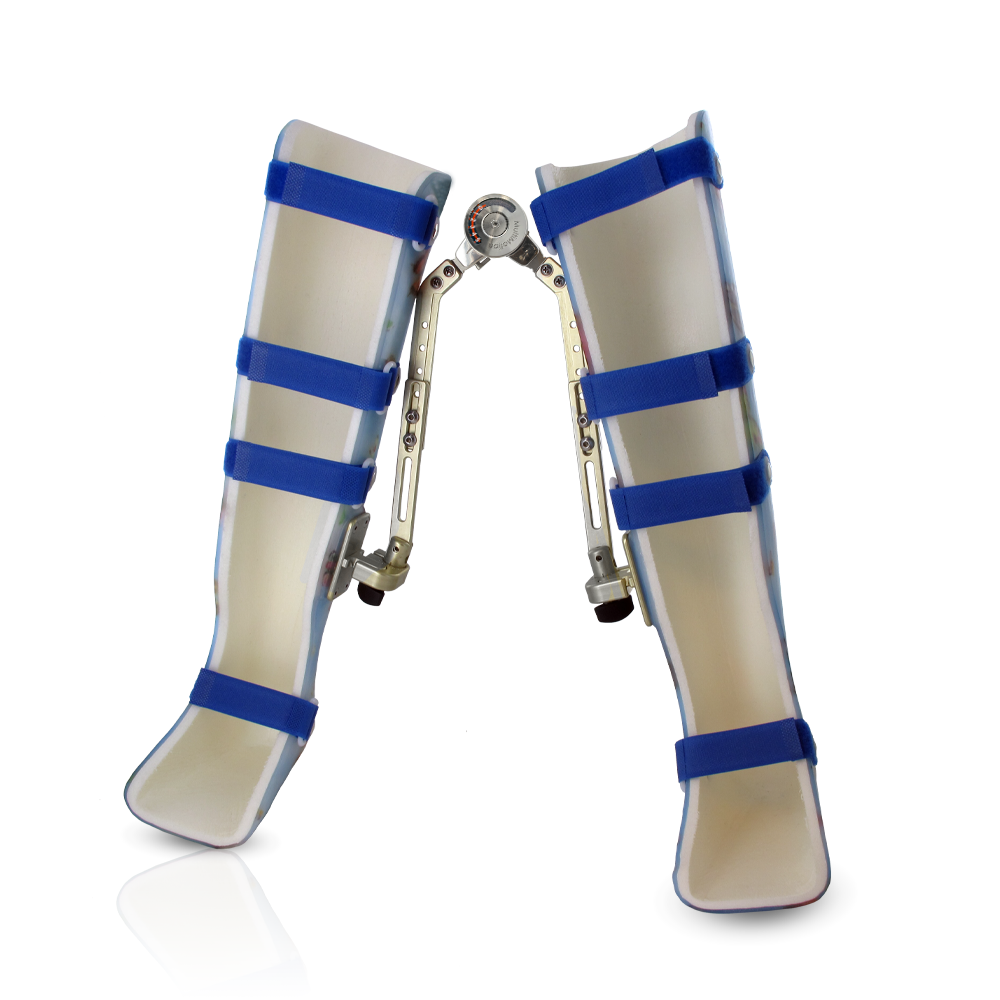 The Dynamic Hip Abduction System is always assembled by two orthotic components - the corrective system joint and the abduction bars – and combined with the KEVO leg shells, they represent the complete hip abduction orthosis.